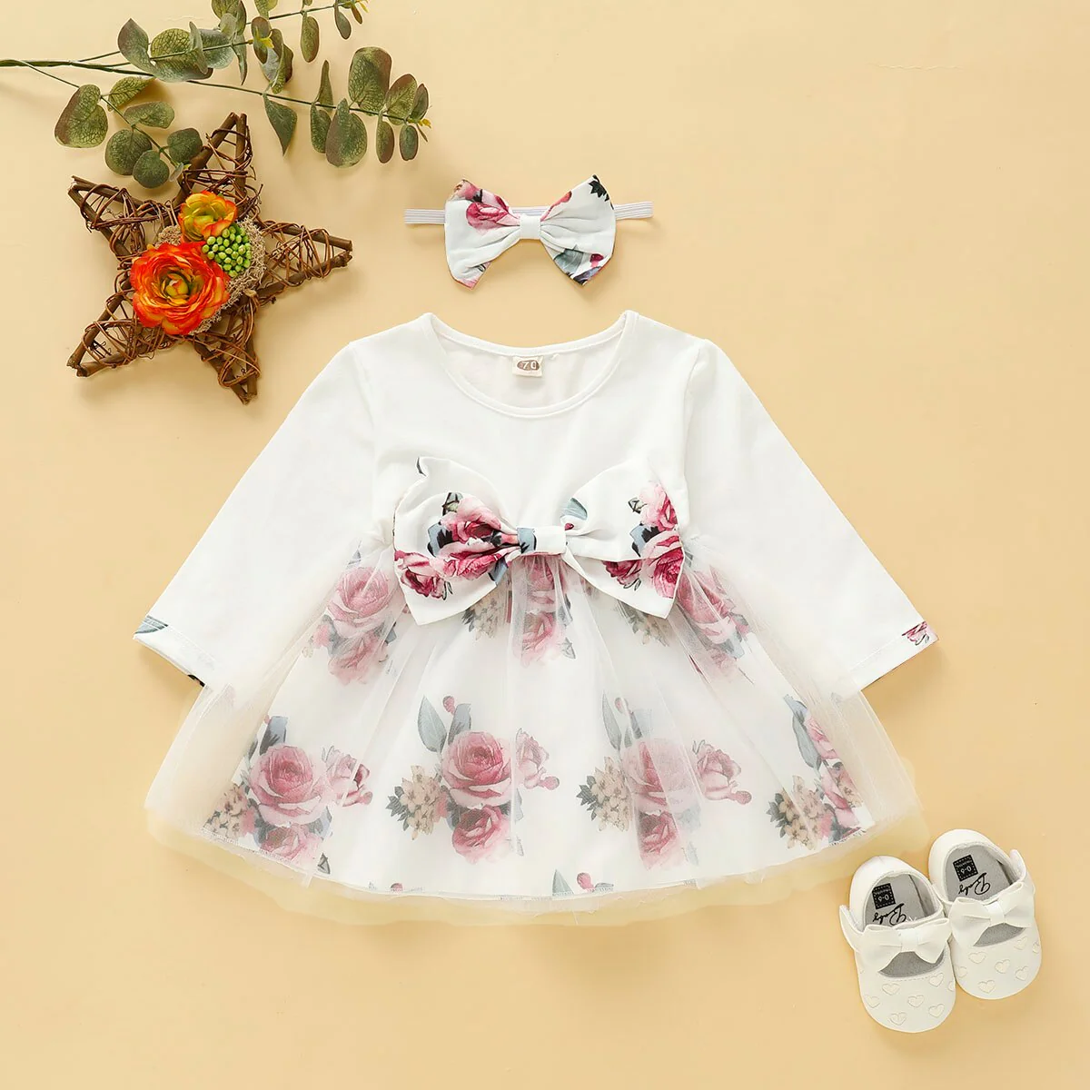 Robe bébé fille à manches longues et imprimé floral et papillon