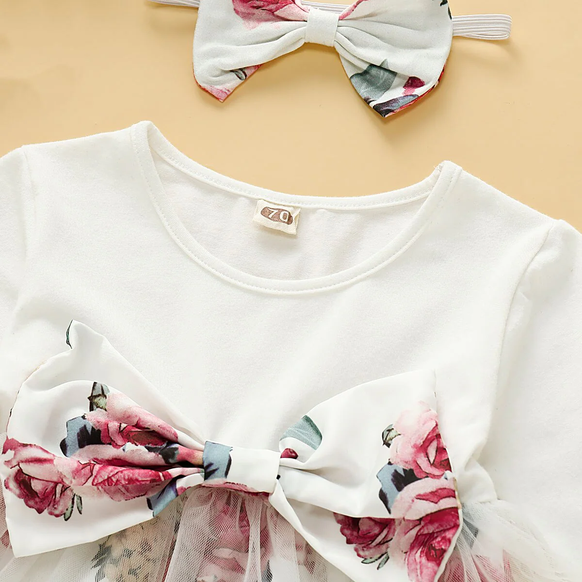 - Petit nœud en ruban appliqué en décor.