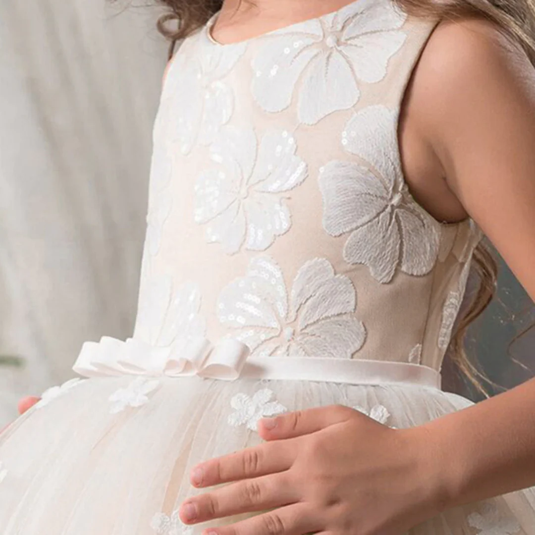 Élégante, sophistiquée et intemporelle : voici quelques-uns des looks que votre petite princesse arborera avec cette robe de bal sans manches à motif floral. Délicatement ornée d’appliqués floraux brodés, elle lui confère le look vintage et royal dont rêvent toutes les filles. Une coupe parfaite pour une vraie princesse.