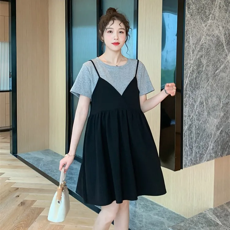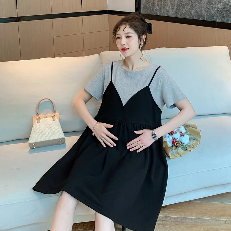 Soyez élégante et confortable sans effort avec cette robe de maternité d’été au look faussement deux pièces tendance. Composée d’un t-shirt doux à col rond superposé à une robe nuisette ample style babydoll, elle allie style décontracté et fonctionnalité pour les futures mamans. Idéale au quotidien, pour les sorties ou les soirées décontractées, cette robe de maternité mi-longue vous assure confort et élégance tout au long de votre grossesse.