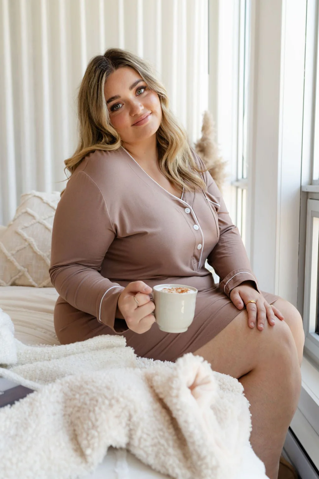 Robe de nuit café au lait manches longues