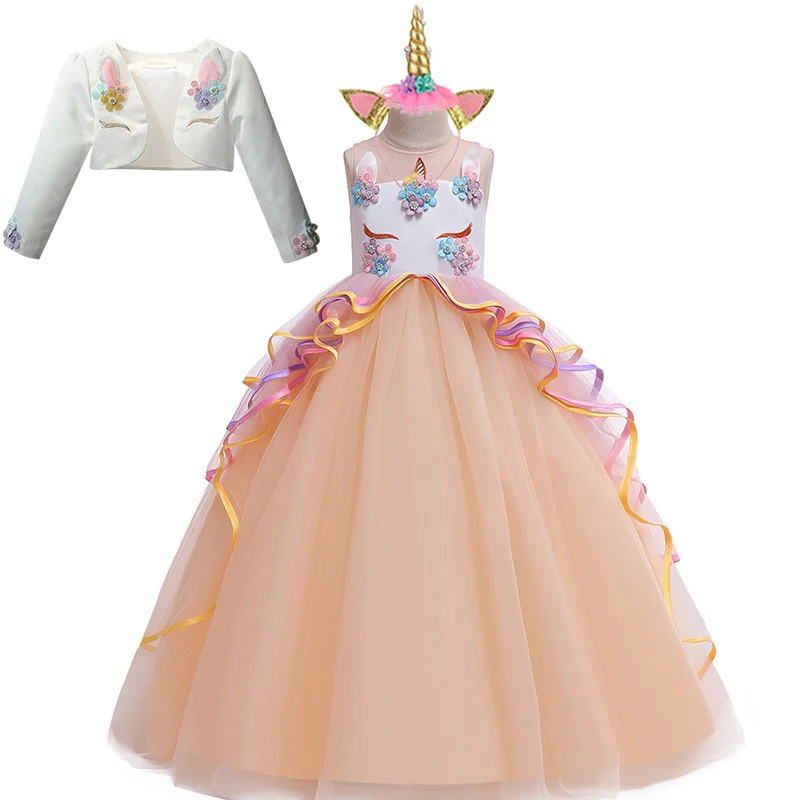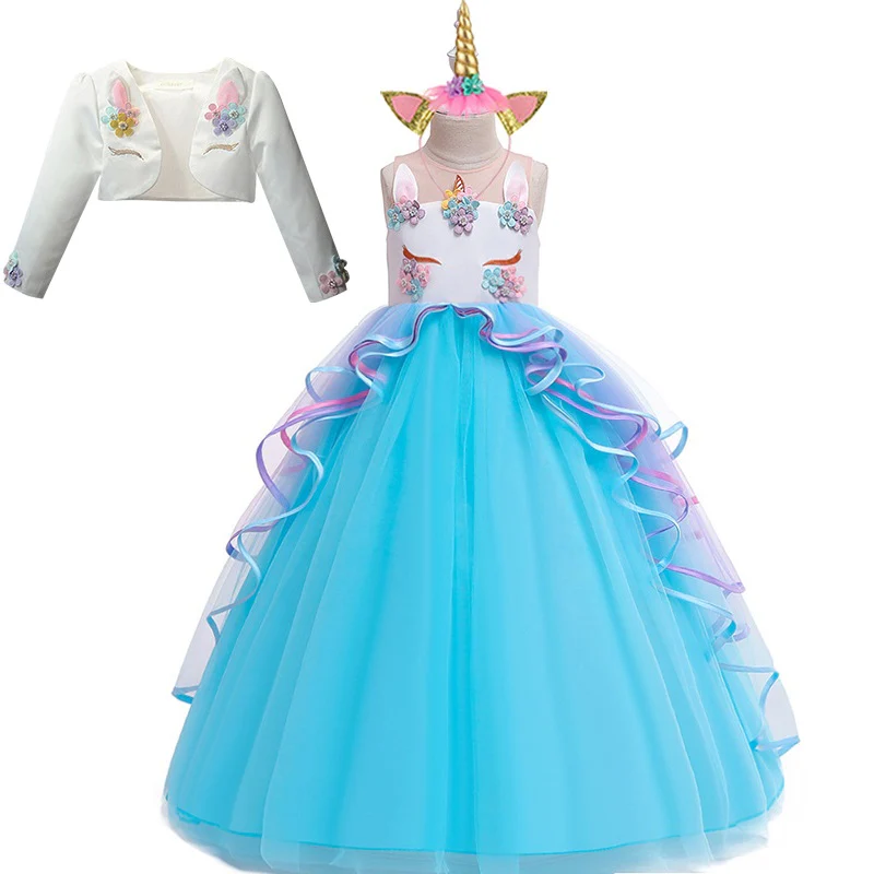 - Robe licorne colorée arc-en-ciel, longueur cheville, avec serre-tête licorne et manteau.