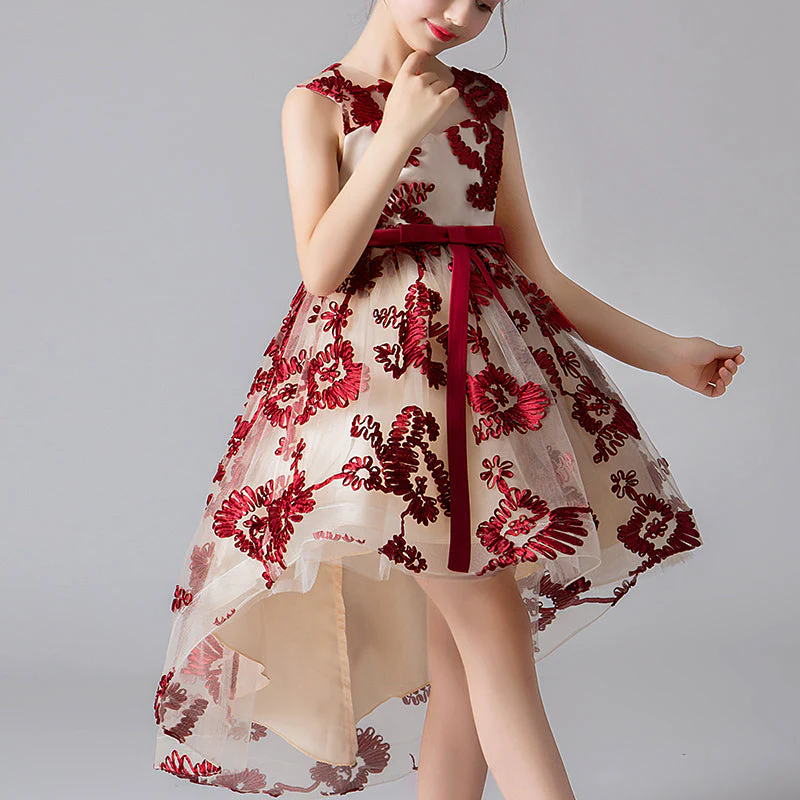 Si les adultes et les femmes adorent se déguiser, les enfants aussi. Cette robe de soirée longue à motifs brodés est un excellent choix pour toutes les occasions. La jupe est en tulle superposé avec un motif brodé.