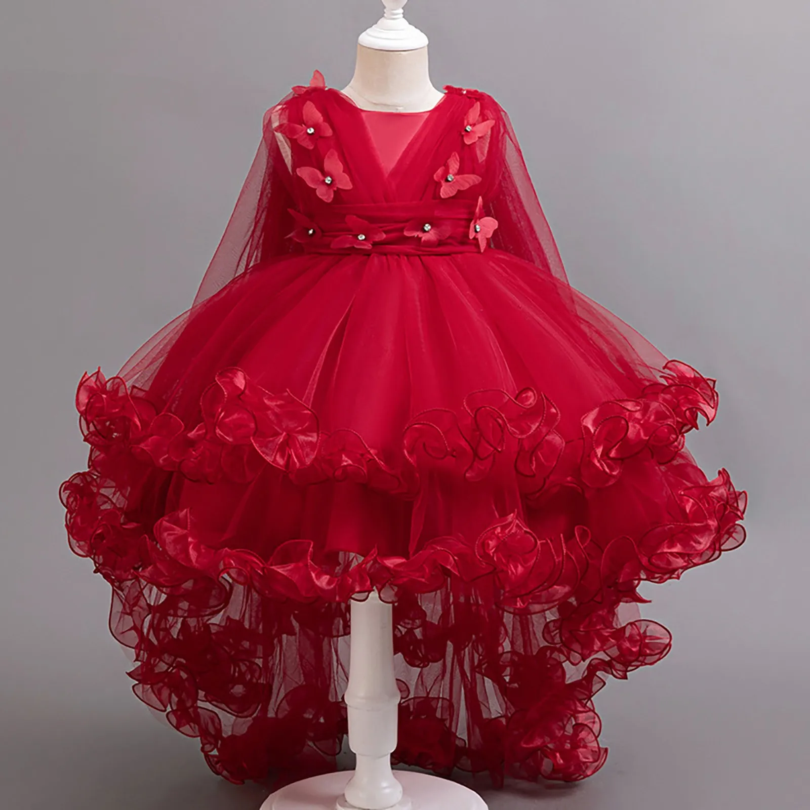Robe de soirée papillon asymétrique pour fille – Tulle élégant, tenue formelle pour anniversaire et fêtes, 18 mois à 7 ans