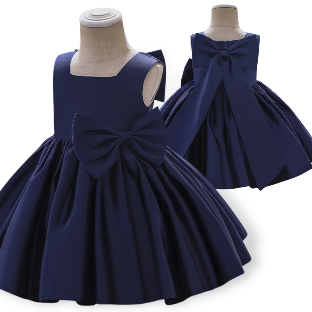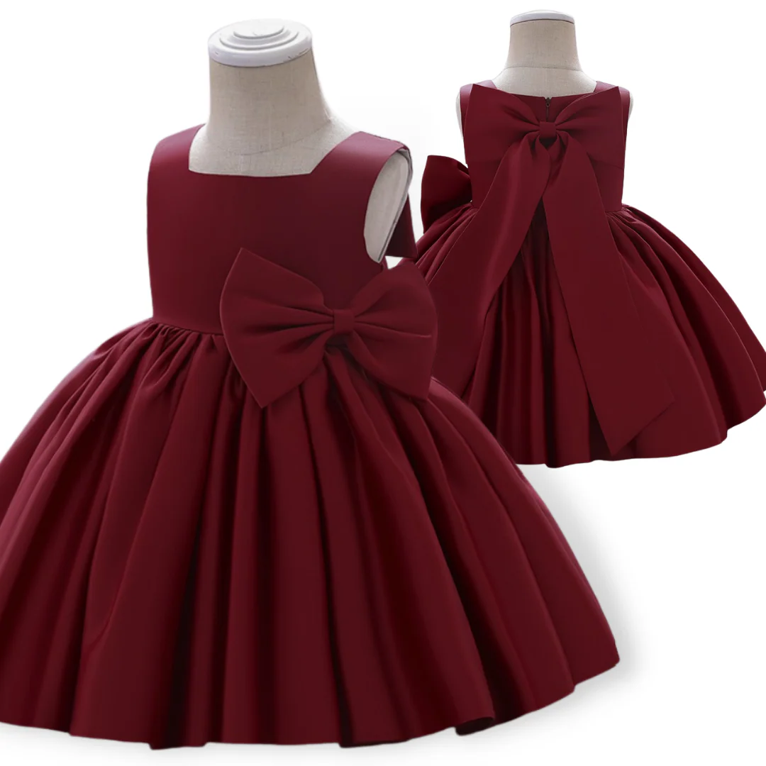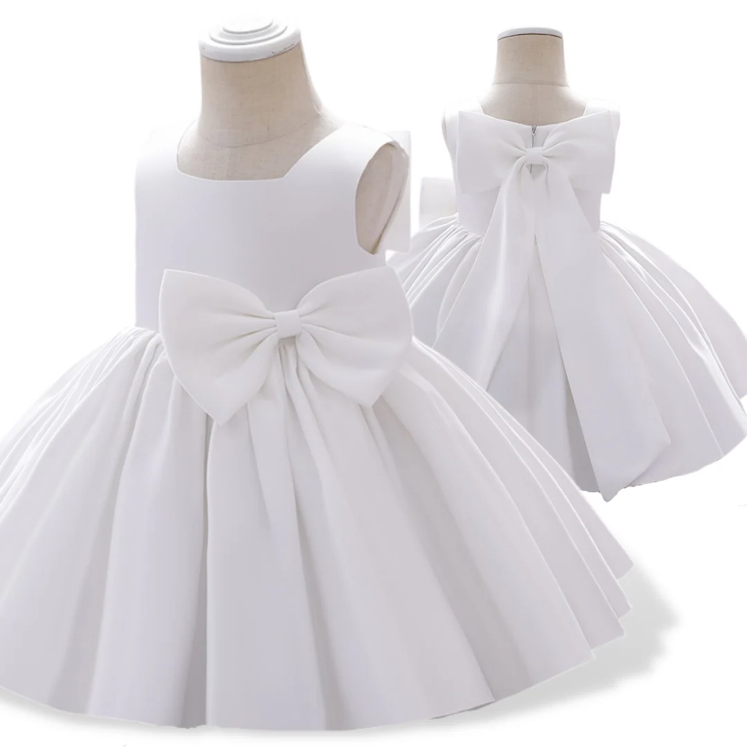 Robe de soirée sans manches en soie à gros nœud pour bébé fille