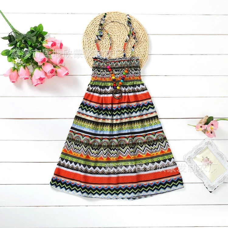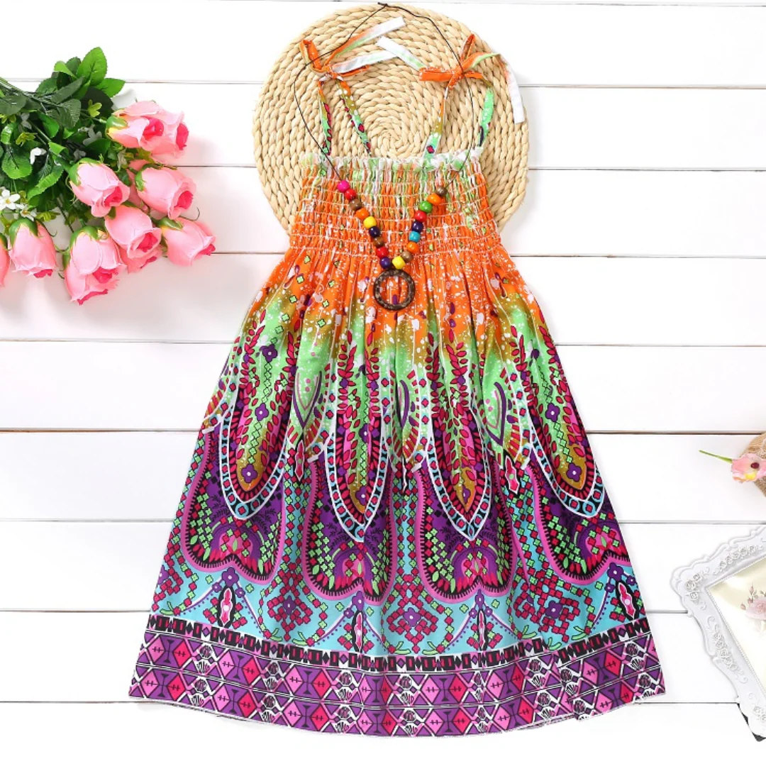 Robe d’été bohème à imprimé ornement aztèque pour fille