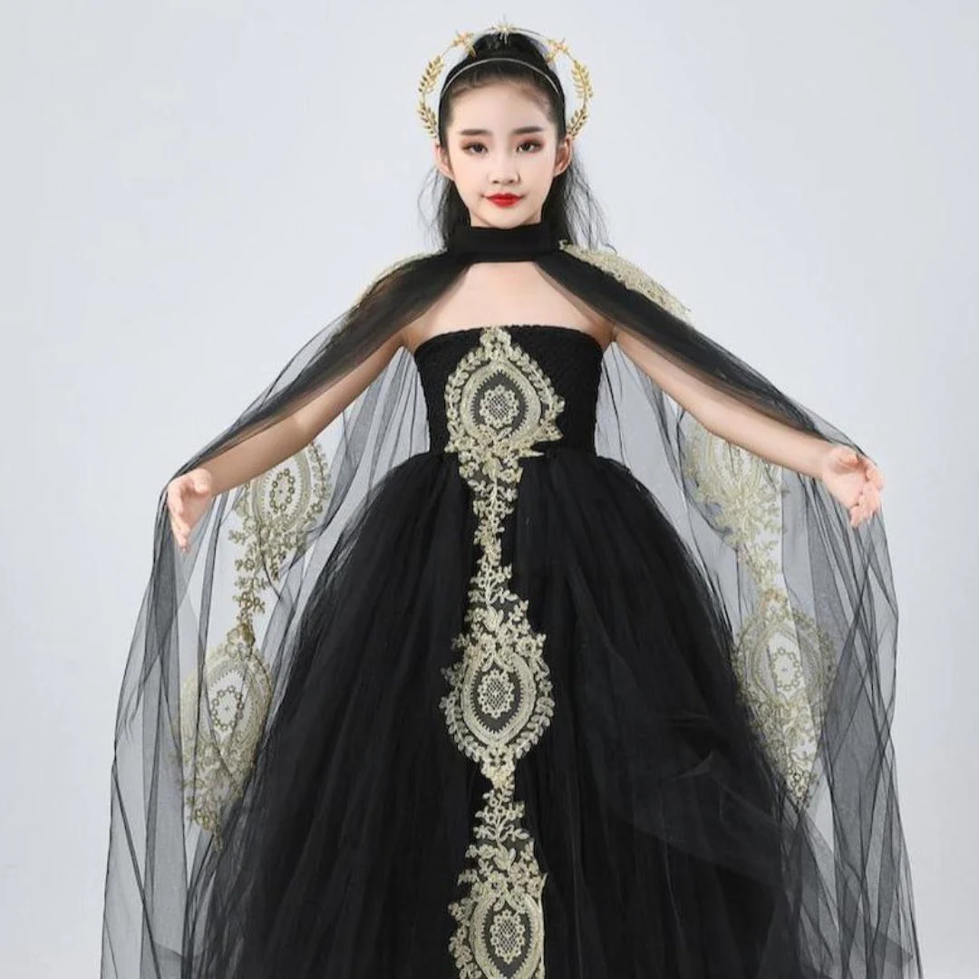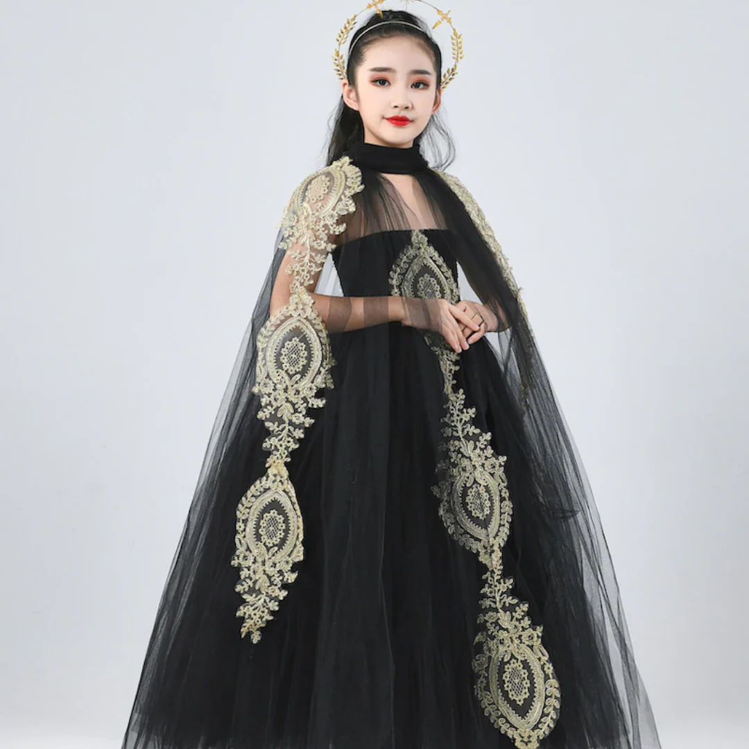 Vous voulez que votre princesse soit la reine du bal ? Soyez la seule fille dans la pièce à porter la robe en dentelle noire parfaite. Des événements de groupe aux mariages, cette robe en dentelle noire avec châle en gaze donnera à votre petite fille confiance en elle et lui permettra de se sentir belle toute la nuit.