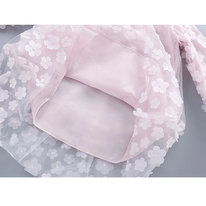 Robe en maille multicouche à manches longues et motif floral pour fille
