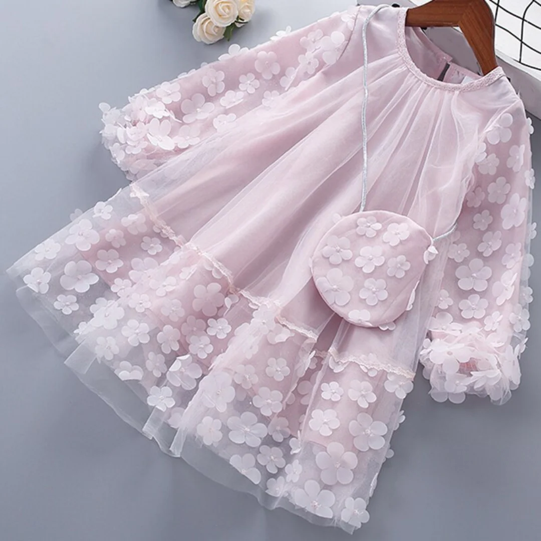 C’est le rêve de chaque fille de devenir une princesse ! Cette robe à manches longues superposées pour fille avec motif floral est magnifique et idéale pour les journées joyeuses. Livrée avec un sac assorti, elle se sentira encore plus raffinée que sa princesse préférée.
