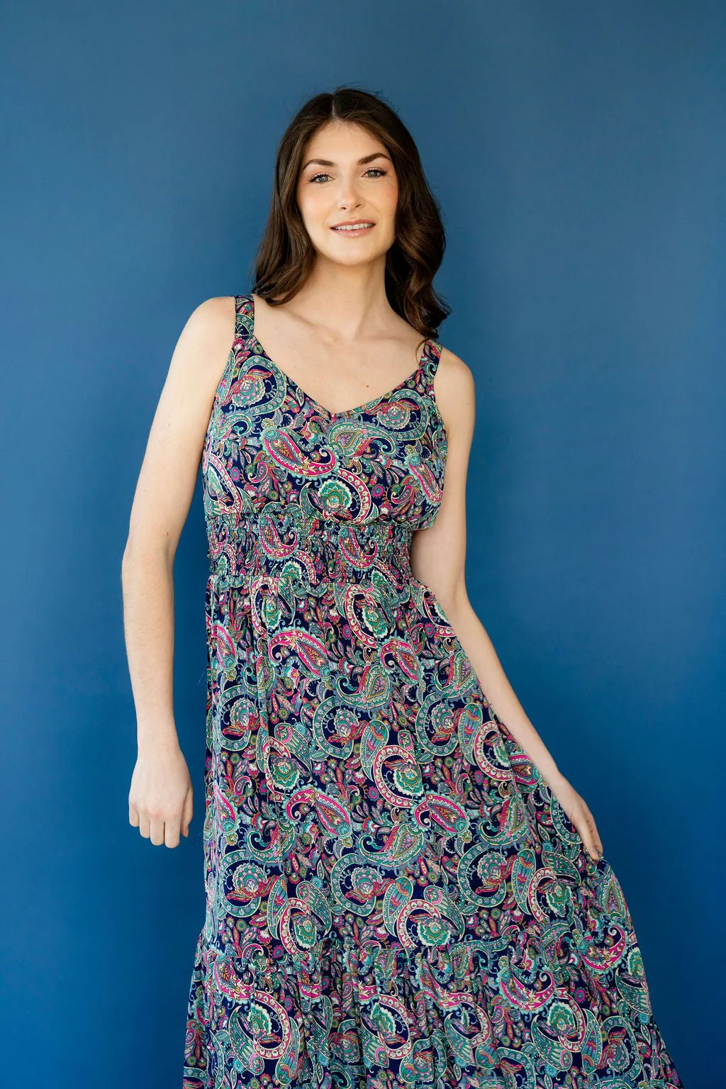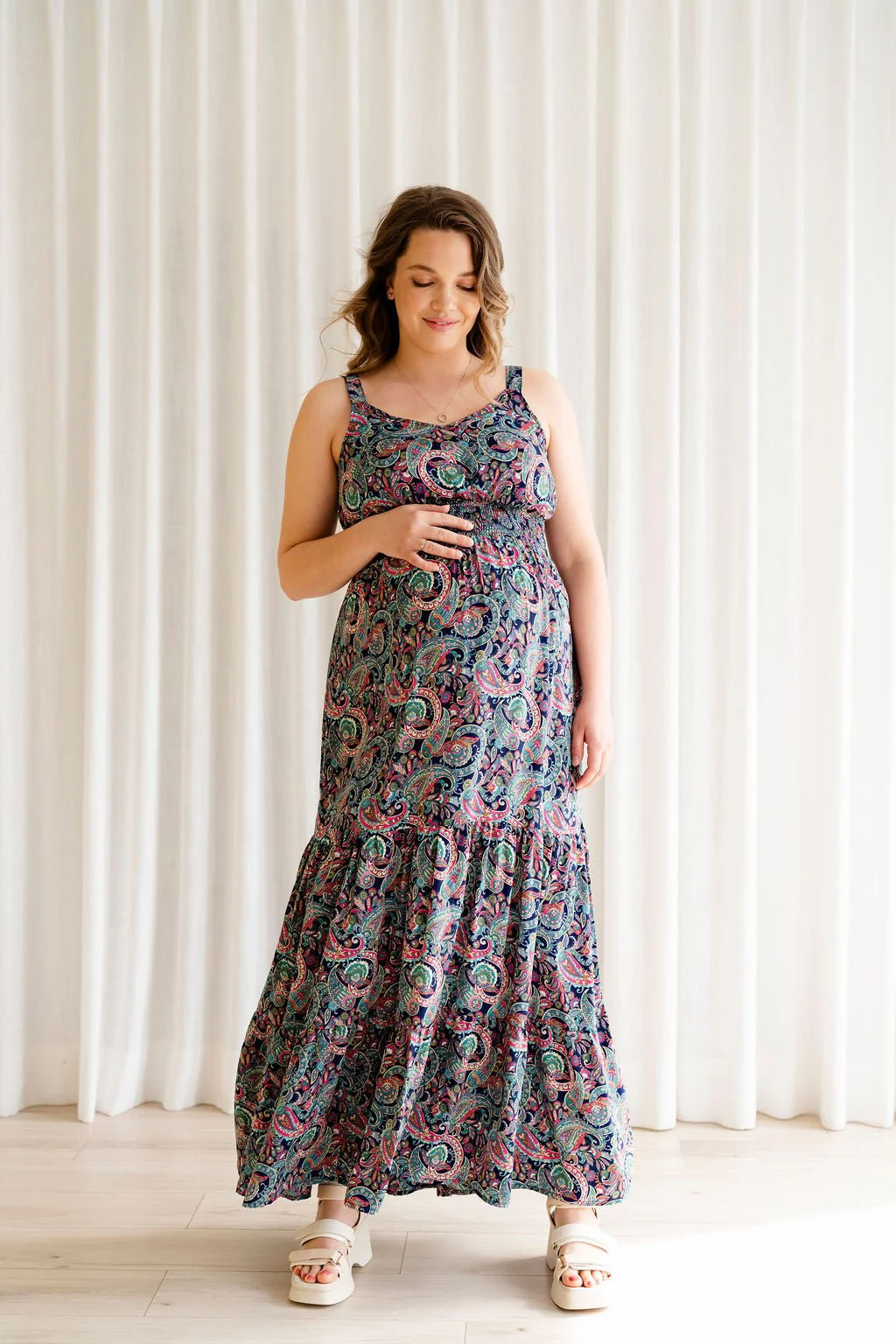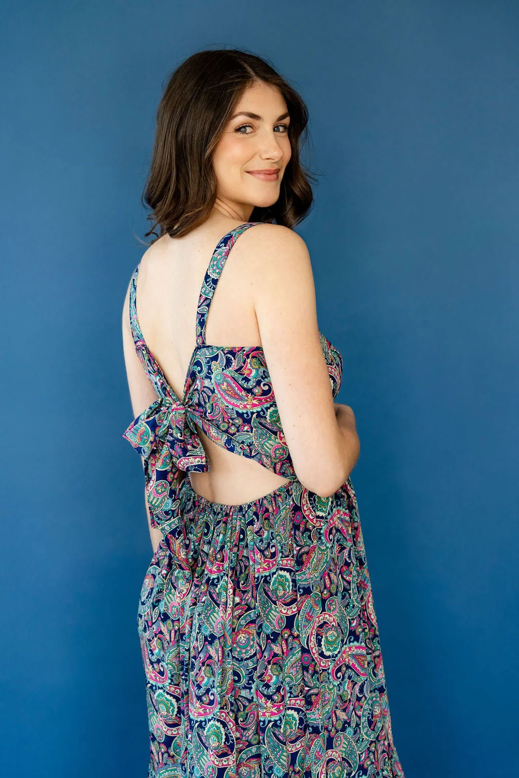 Son nid d’abeille sous la poitrine épouse les formes avec douceur, tandis que la boucle au dos permet un ajustement personnalisé, pour une tenue qui allie féminité et maintien. Une robe aussi belle que facile à porter, idéale pour les soirées estivales ou les grandes occasions!