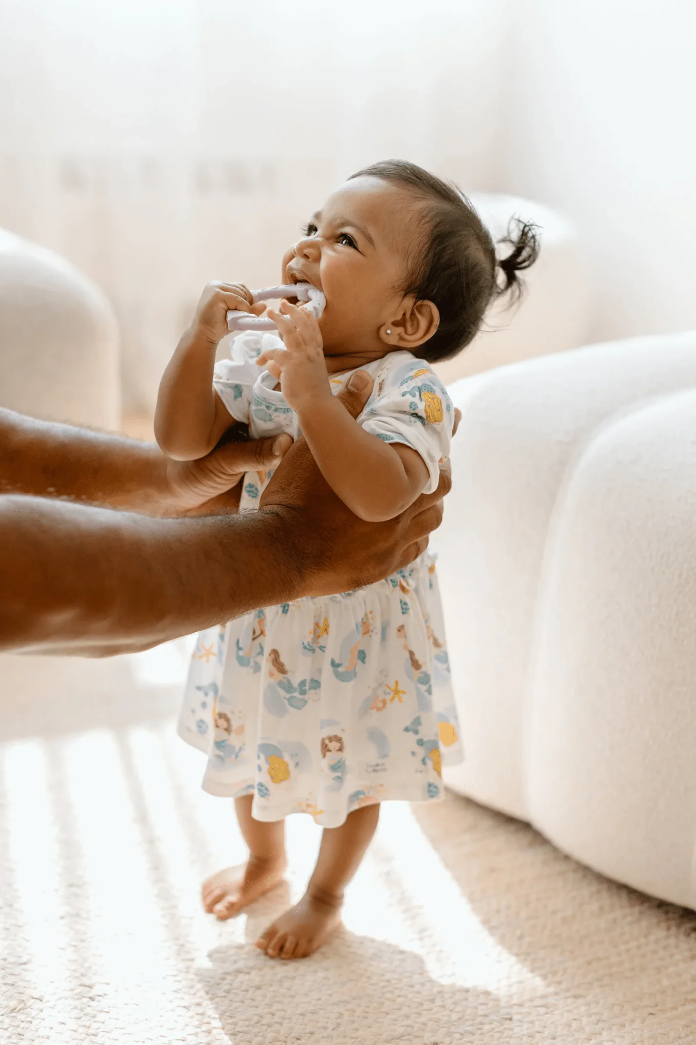 Confectionnée dans le mélange signature de tissu ultra-doux et durable, composé de Lyocell TENCEL™ et de coton biologique, cette robe est un indispensab. Le Lyocell possède d’excellentes propriétés de régulation thermique et, grâce à ses coutures plates et son étiquette d’entretien intérieure imprimée,elleoffre un confort optimal à la peau délicate de bébé.
