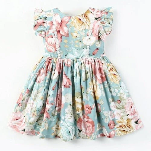 Notre magnifique robe fleurie bleu sarcelle en mélange de coton est parfaite par tous les temps. Elle peut être portée seule en été et avec des collants et un cardigan en hiver. Elle fera une superbe robe pour un gâteau d’anniversaire, un anniversaire ou tout autre événement.