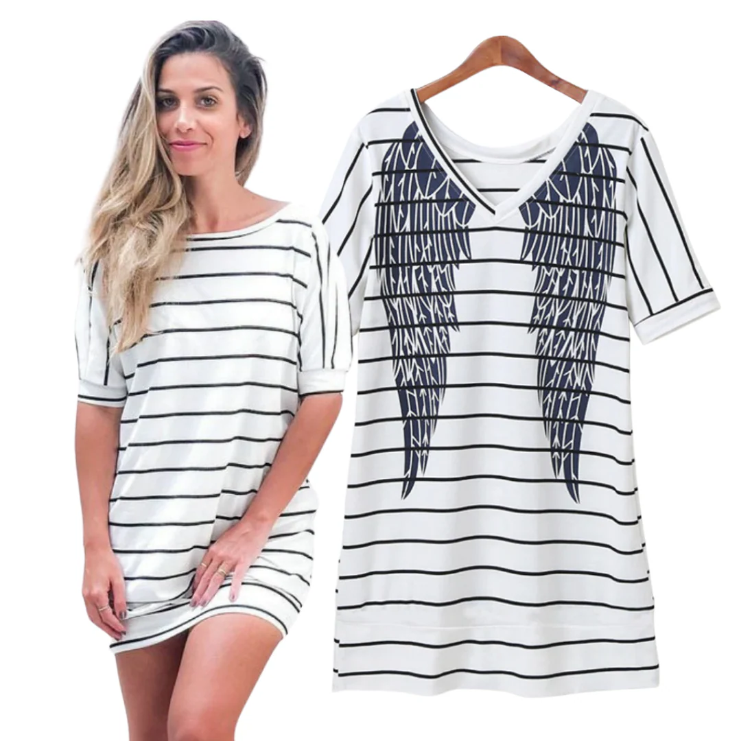 Cette robe t-shirt assortie Rayures Ailes d’Ange Maman et Moi est un vêtement unique pour maman et fille. Elle vous offre une façon amusante de vous habiller avec votre bébé et vous-même cet été !