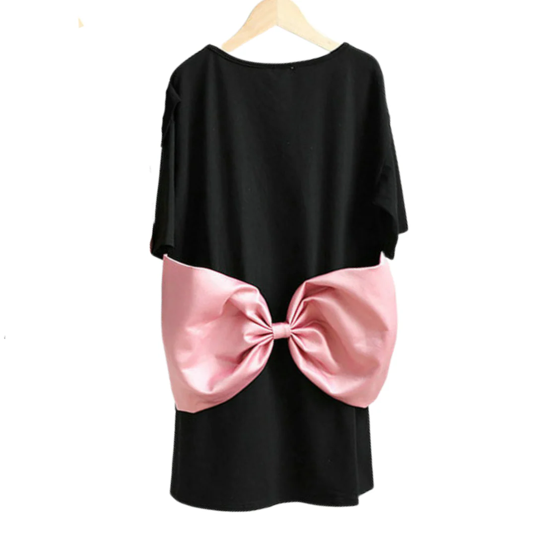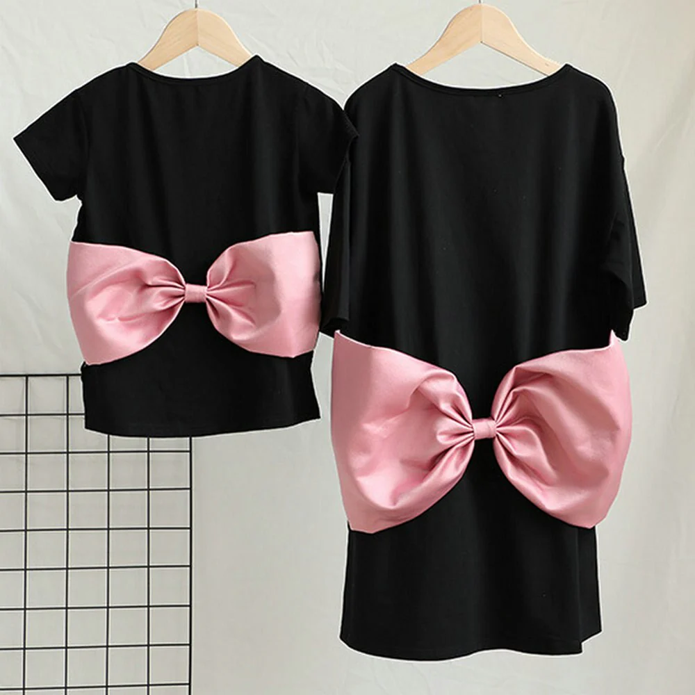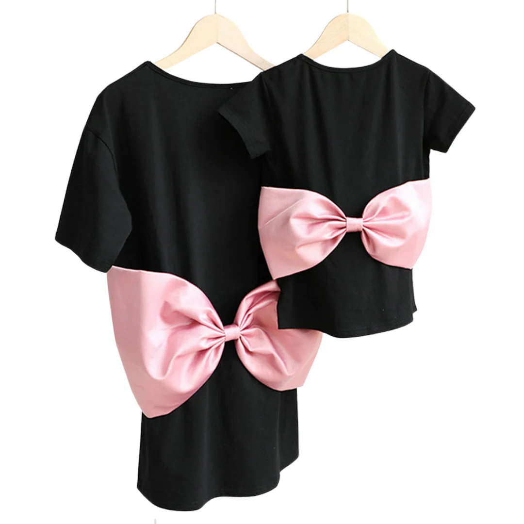 Robe t-shirt assortie maman et moi à gros nœud rose
