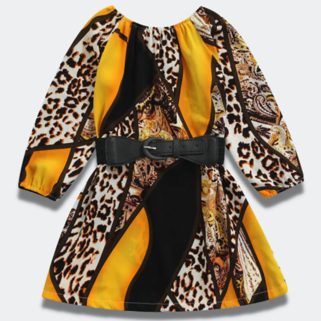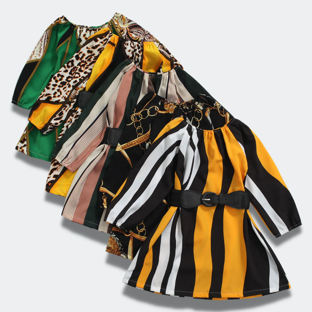 Cette robe à manches longues pour filles avec ceinture à motif est tendance pour les enfants, le meilleur cadeau pour votre adorable petite princesse. Elle est fabriquée à partir de tissus de haute qualité, très douce et confortable, et apportera beaucoup de commodité à vos filles.