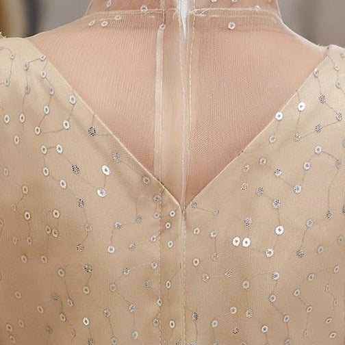 Robe trapèze à manches bouffantes et haut brodé de sequins