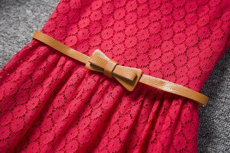 - La robe est une élégante robe en dentelle avec un col carré