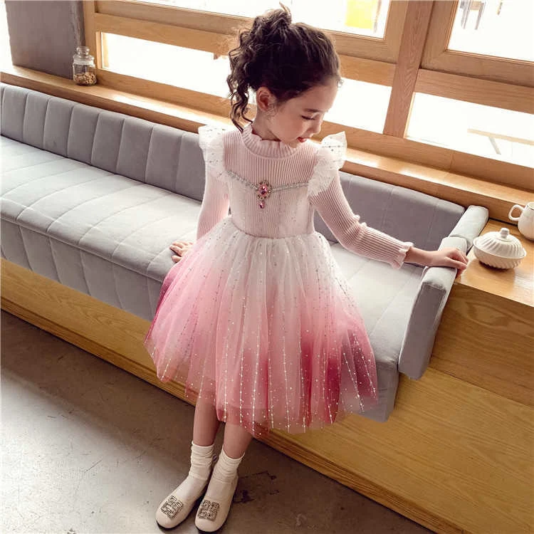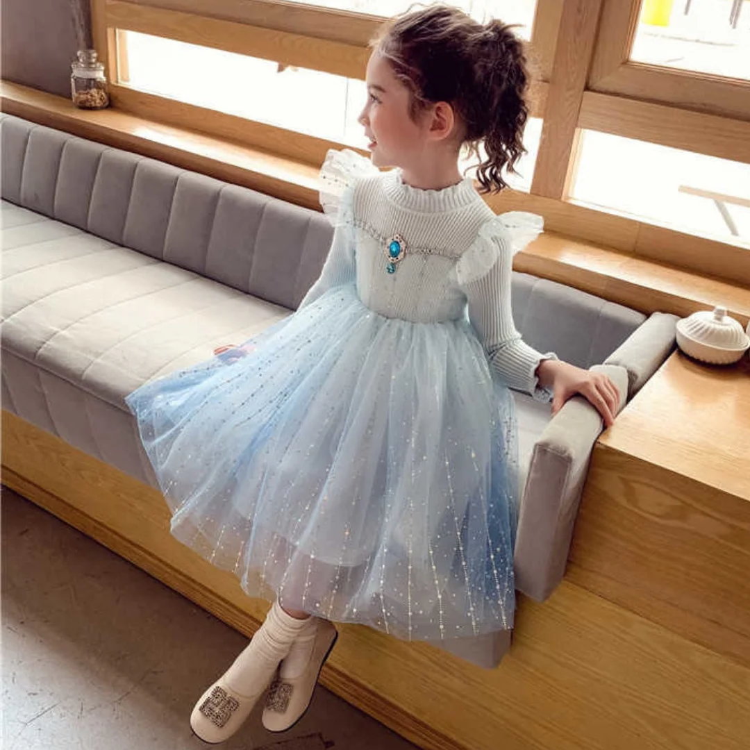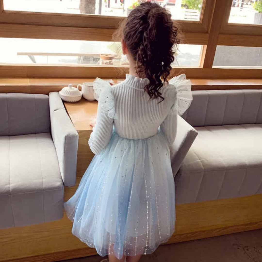 Robe tricotée à manches papillon et strass diamantés pour fille