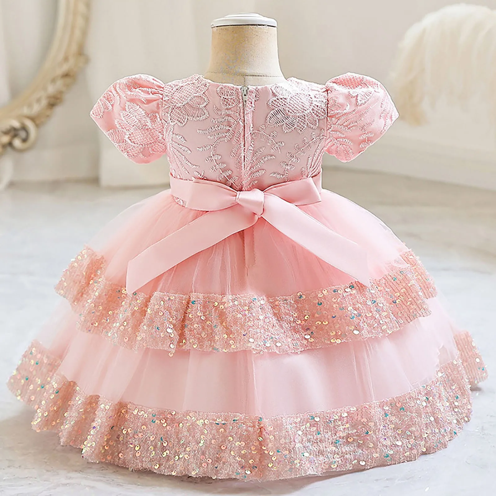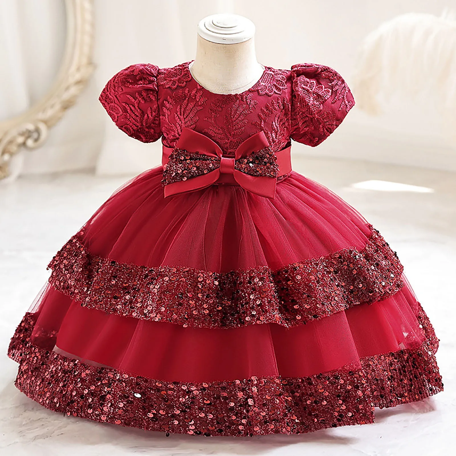 Cette robe pour bébé fille est conçue pour les fêtes et les vacances, alliant élégance et confort. Son haut à paillettes scintillantes se marie parfaitement à sa jupe en tulle superposé, donnant à votre petite fille un charme de princesse. Léger mais résistant, il convient aussi bien aux occasions décontractées que formelles.