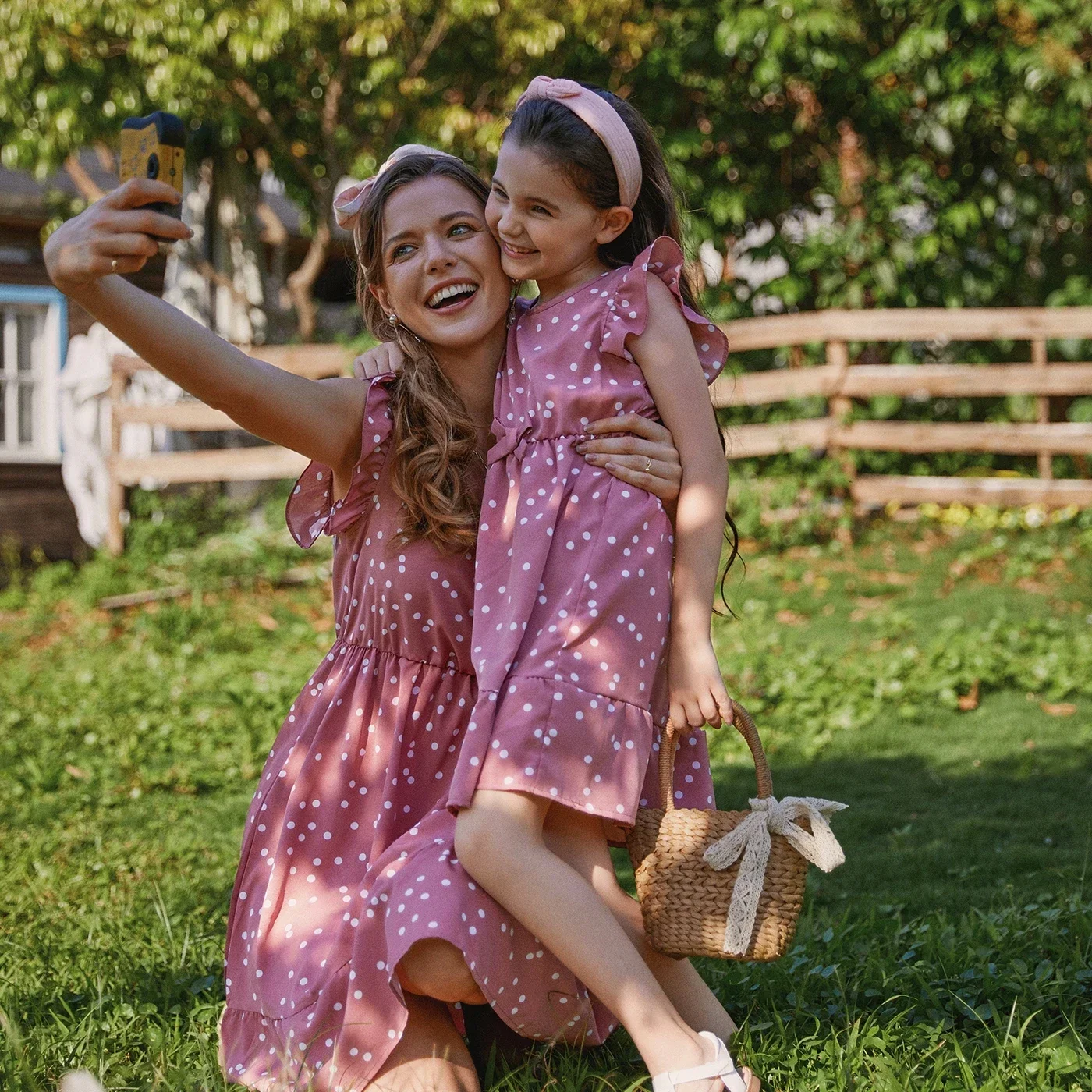 Découvrez nos charmantes tenues assorties : les robes portefeuille croisées à pois roses pour maman et fille. Confectionnées avec soin en polyester de haute qualité, ces robes incarnent le confort et le style, parfaites pour les chaudes journées d’été et pour créer de précieux souvenirs avec votre enfant.