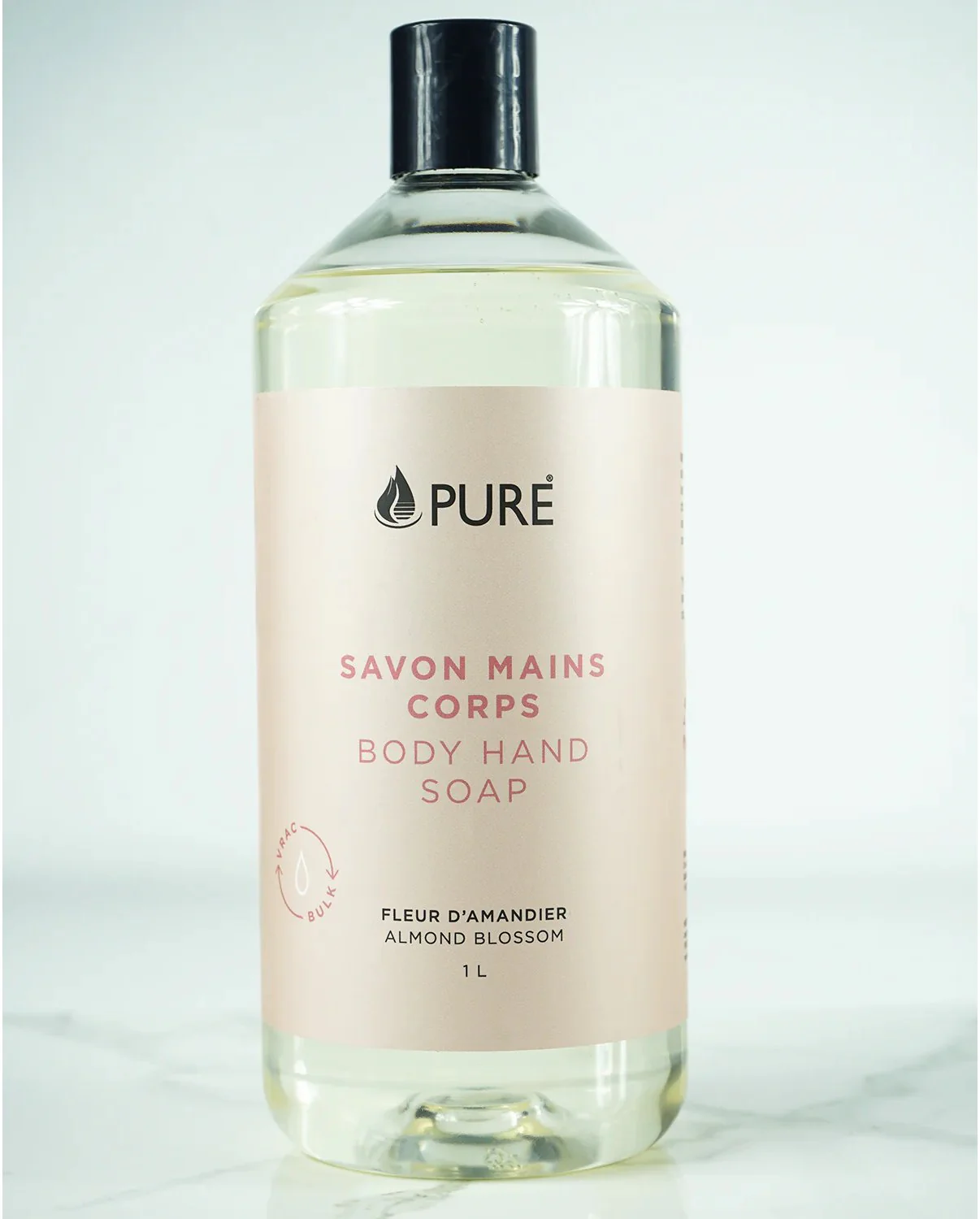 Pure occupe une place de choix à la boutique. La fragrance fleur d’amandier est une odeur chouchou de la clientèle. Étant produit localement et disponible en vrac c’est un choix évident!