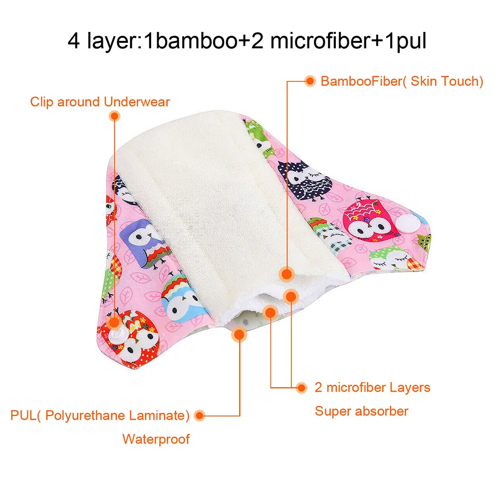 Serviettes hygiéniques lavables en bambou, ultra-absorbantes et douces, lot de 5