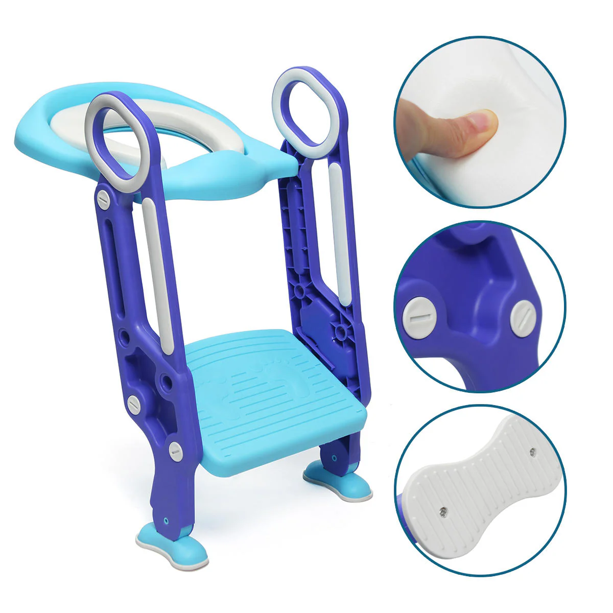 Certains peuvent se demander pourquoi ne pas simplement mettre un petit banc à côté des toilettes pour votre enfant. Parce que ceux-ci peuvent glisser et causer des blessures. Ce réducteur est équipé d’une marche avec des pieds antidérapants pour s’assurer qu’il reste bien en place. Avec cette marche antidérapante, votre enfant peut monter et descendre facilement et en toute sécurité, la marche ne glissant pas de sa position. La marche de l’échelle s’ajuste sur deux hauteurs afin de grandir avec votre enfant. L’échelle comprend aussi des poignées robustes auxquelles s’accrocher en montant, descendant et en s’asseyant, pour encore plus de sécurité.