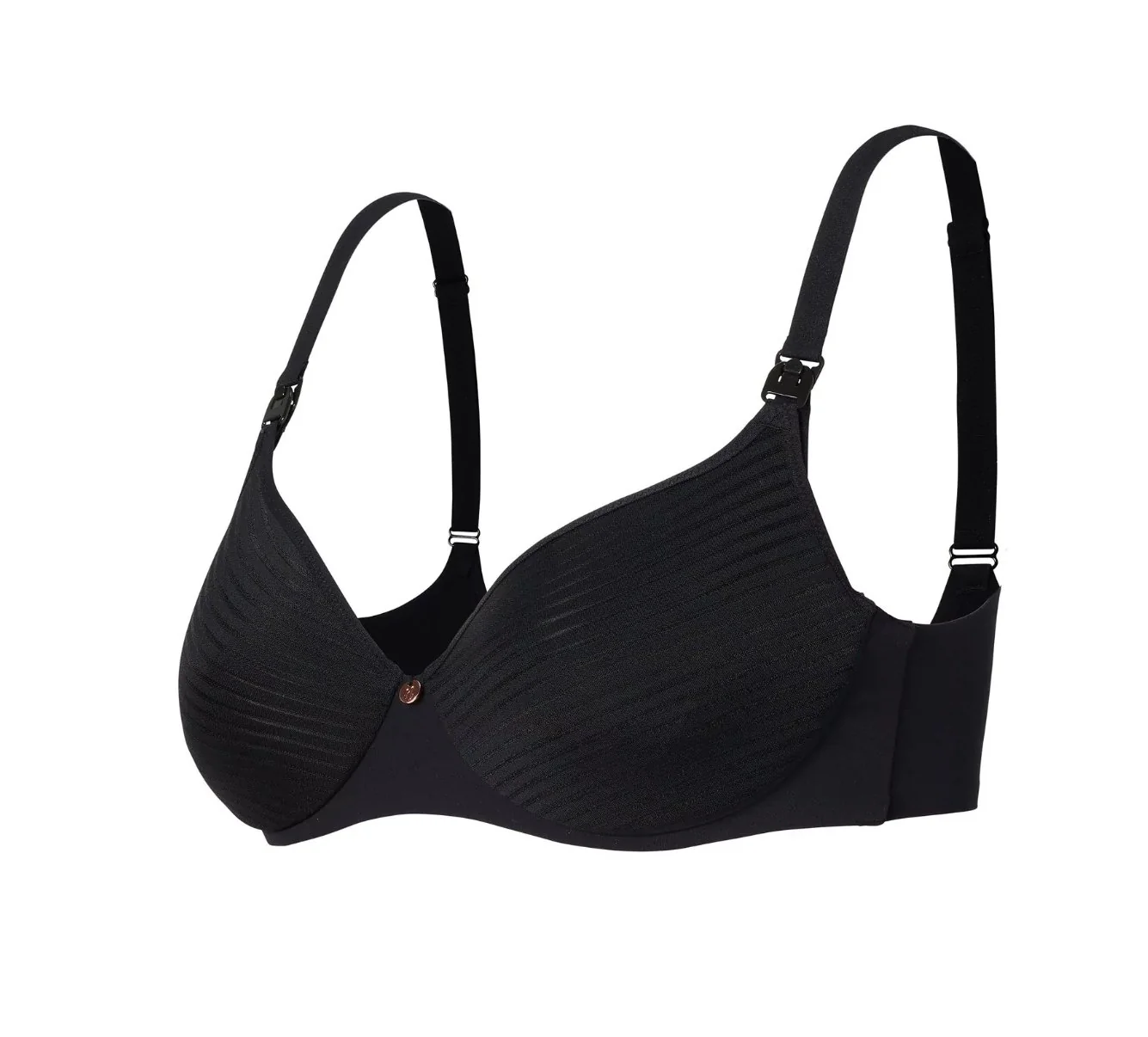 Soutien-gorge d’allaitement Spacer Stripe, avec rayures brillantes pour un classique revisité. Les clips permettent d’ouvrir ou de fermer les bonnets à une seule main pour allaiter facilement. 75% polyamide 25% élasthane