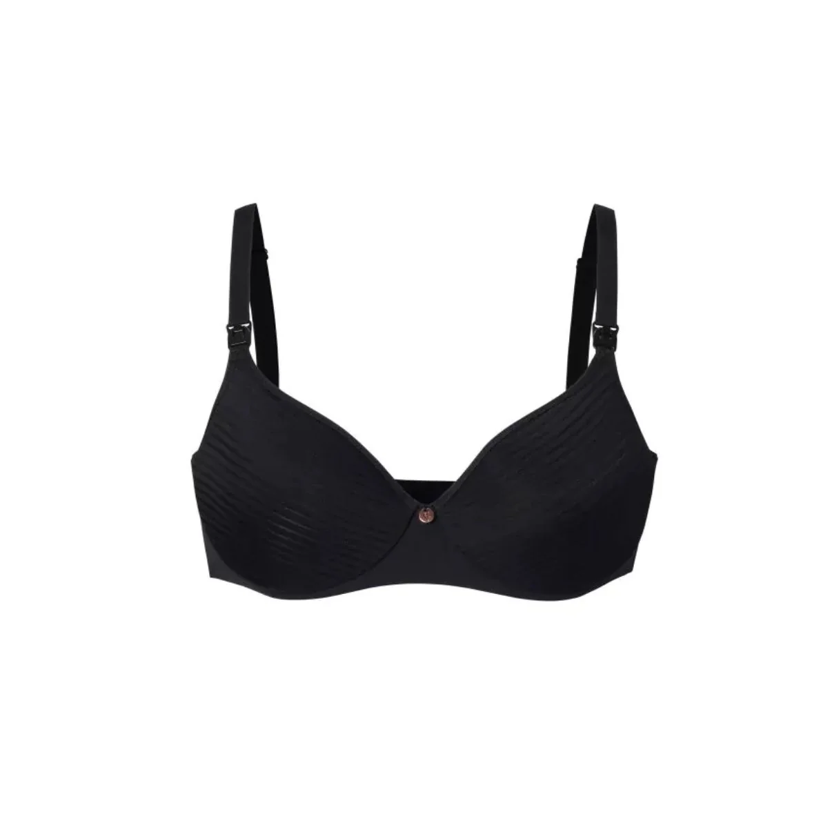 Soutien-gorge d’allaitement Spacer Stripe, avec rayures brillantes pour un classique revisité. Les clips permettent d’ouvrir ou de fermer les bonnets à une seule main pour allaiter facilement.