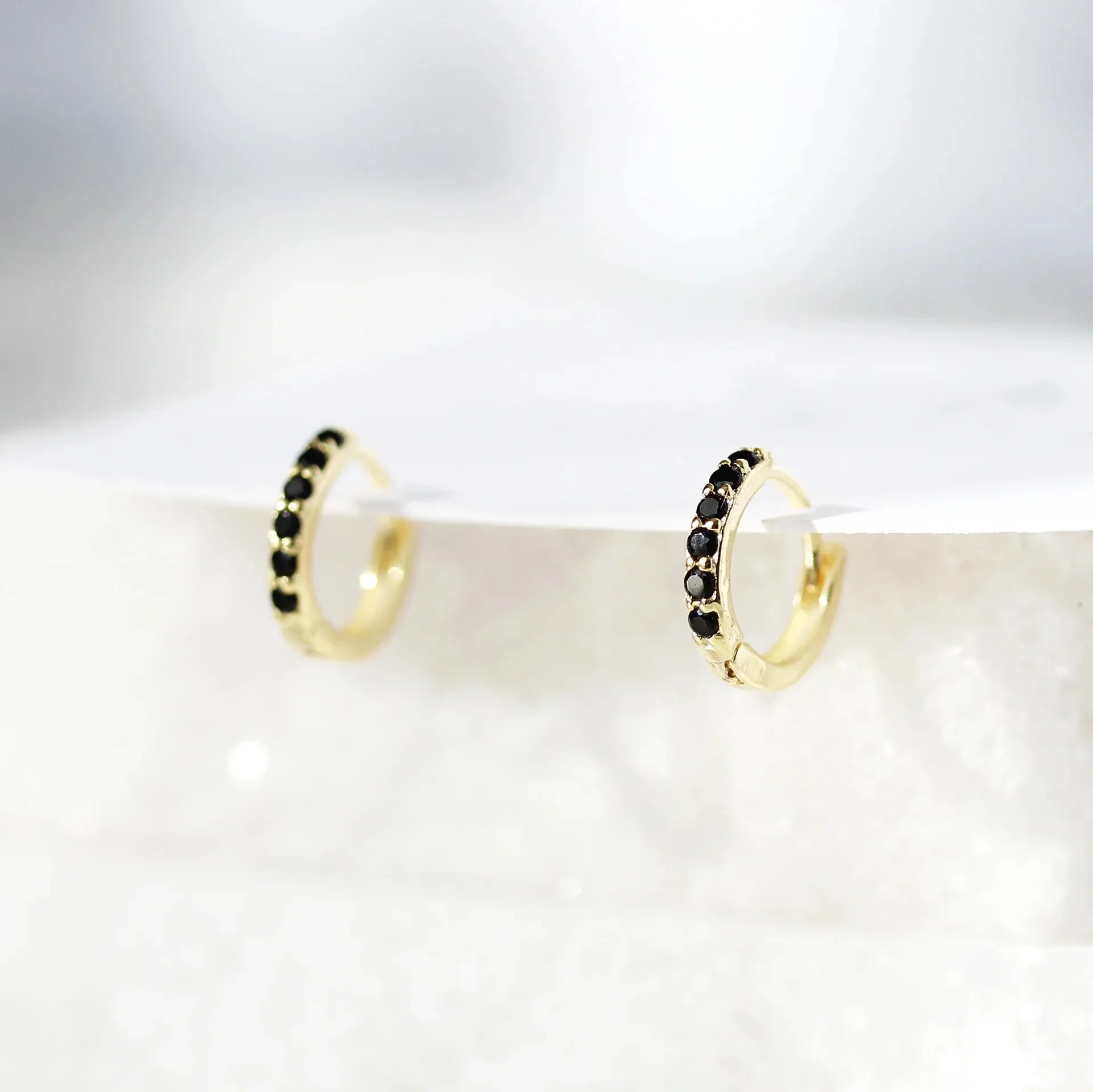 Une paire d’anneaux classiques et scintillants, parfaits pour être portés tous les jours. Ces anneaux qui cliquent sont si faciles à mettre, on les adore! Argent sterling .925Sertis de minuscules zircons noirsArgent (rhodium)Diamètre interne de 7mm