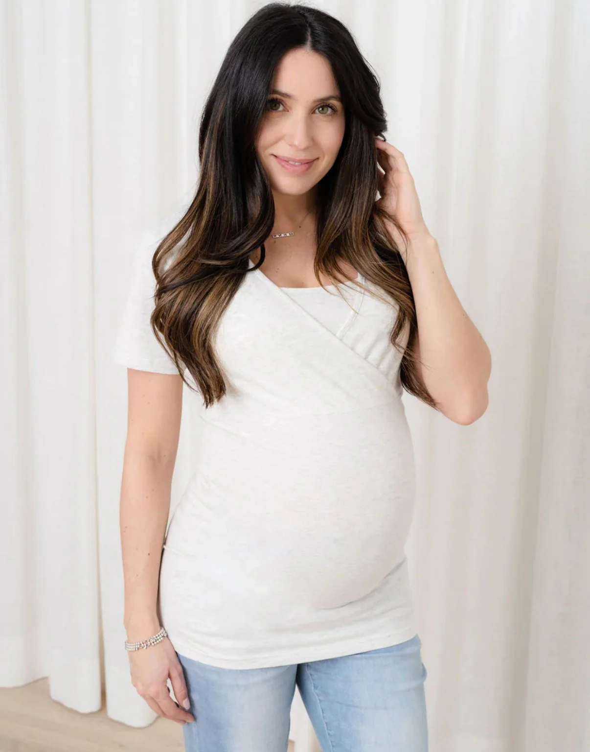 Léger, confortable et extensible, un t-shirt cache-coeur est un basique parfait pour votre garde-robe de maman!