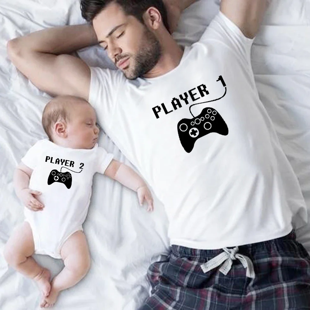 T-shirts familiaux assortis Joueur 1/Joueur 2