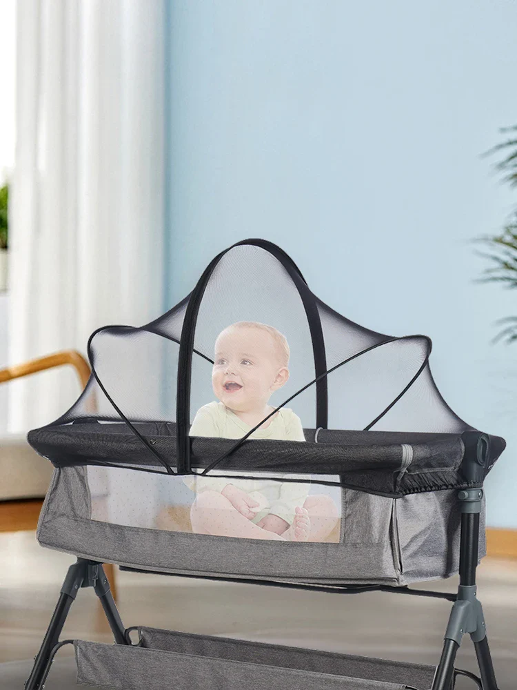 Lit bébé 3-en-1 polyvalent (gris) – Hauteur réglable, panneaux en maille respirants et design pliant adapté aux voyages