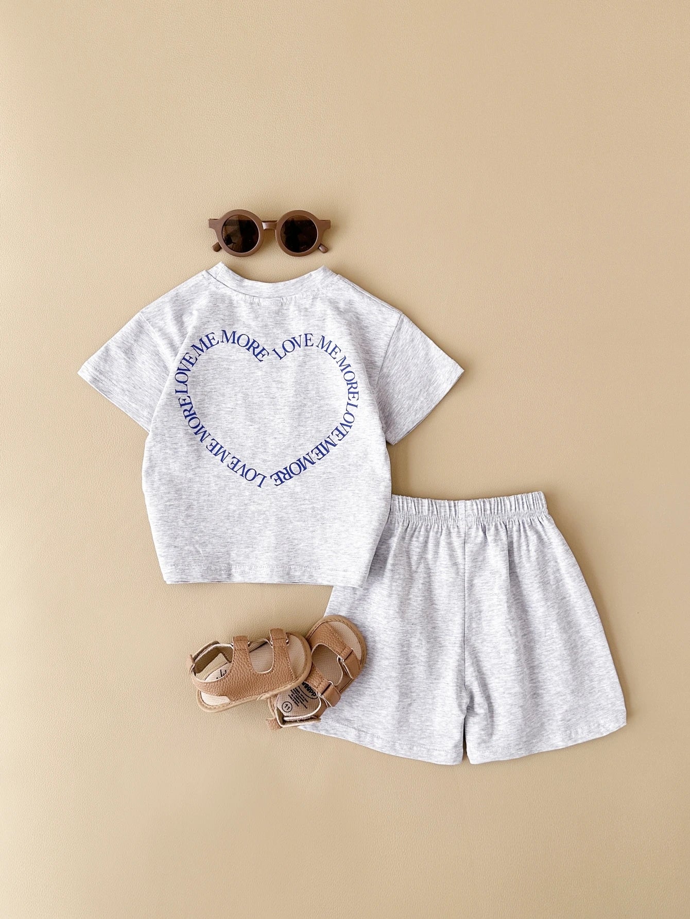 Offrez à votre tout-petit un look tendance et un confort optimal avec notre ensemble d’été 2 pièces pour bébé ! Composé d’un t-shirt en coton doux avec imprimé « LOVE ME MORE » en forme de cœur et d’un short assorti à taille élastique, cet ensemble est parfait pour les journées ludiques et les photos adorables.