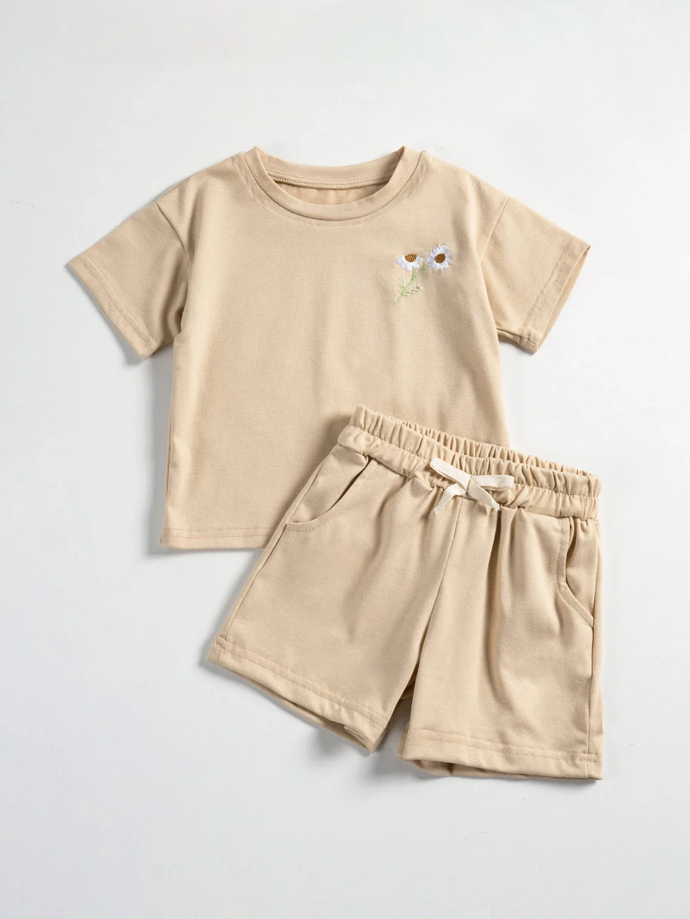 Ensemble pratique : Cet ensemble comprend un t-shirt et un short, offrant une solution de tenue coordonnée et simple pour les parents actifs.