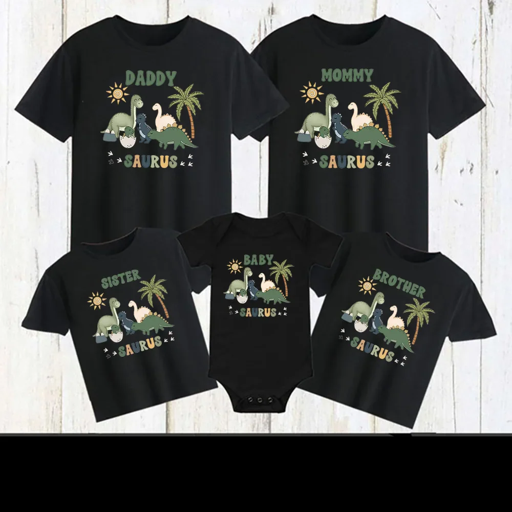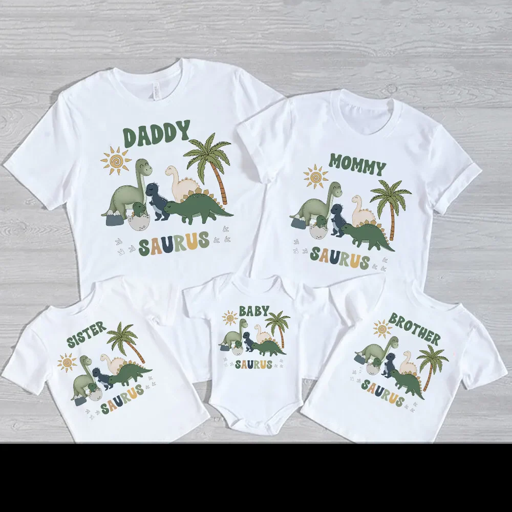- 🦖 Imprimé Dinosaure Amusant : Ces t-shirts arborent un charmant motif dinosaure, ajoutant une touche ludique à vos tenues de famille.