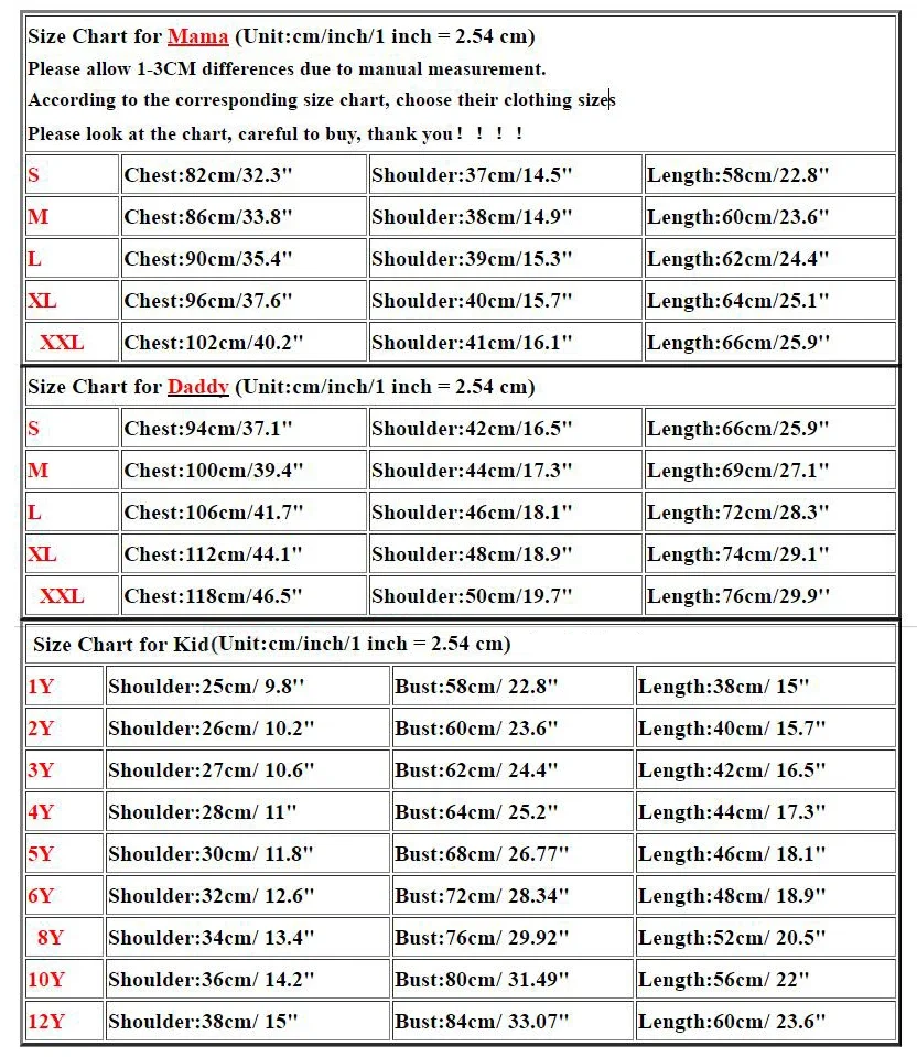 - Variation de taille : Veuillez consulter attentivement le tableau des tailles pour choisir la taille adaptée à chaque membre de la famille.
