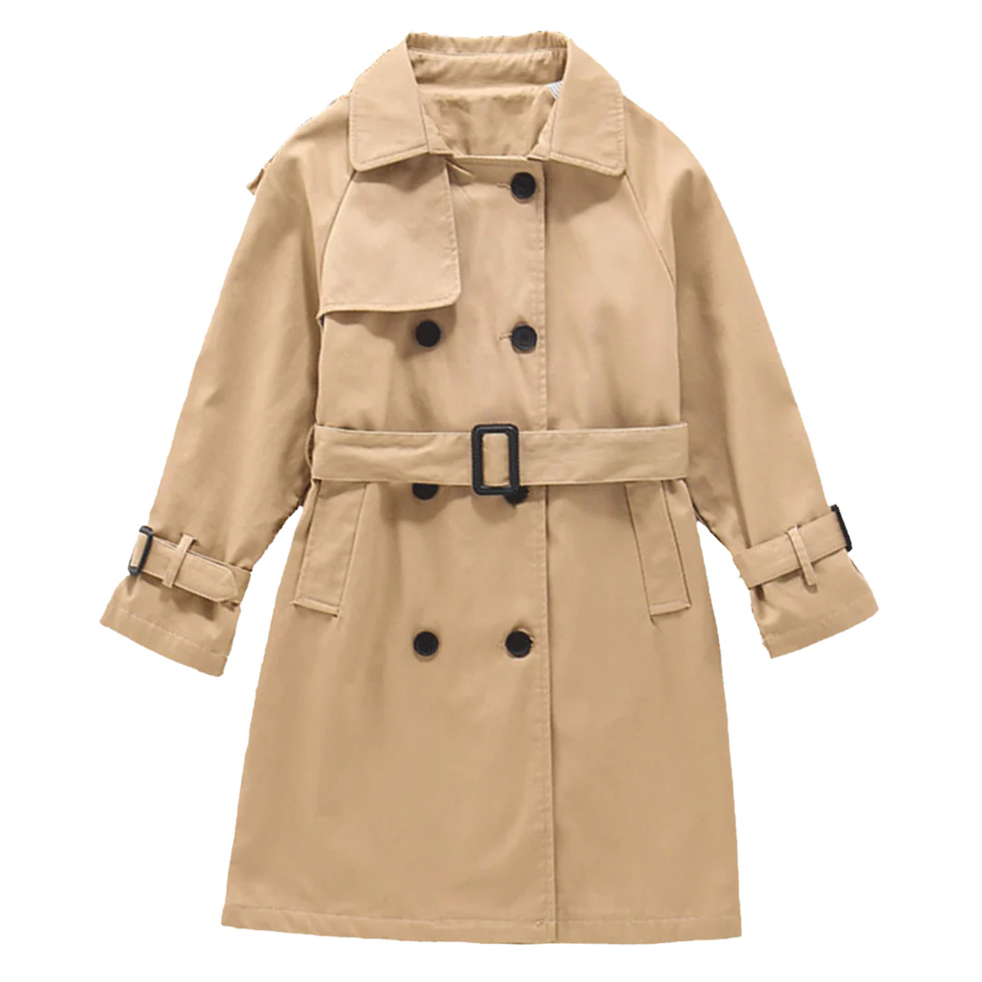 Ce trench-coat marron à manches longues est un classique pour enfant, dans un marron frais au charme intemporel. Il est boutonné sur le devant, doté de revers crantés et d’une ceinture réglable pour un ajustement parfait.